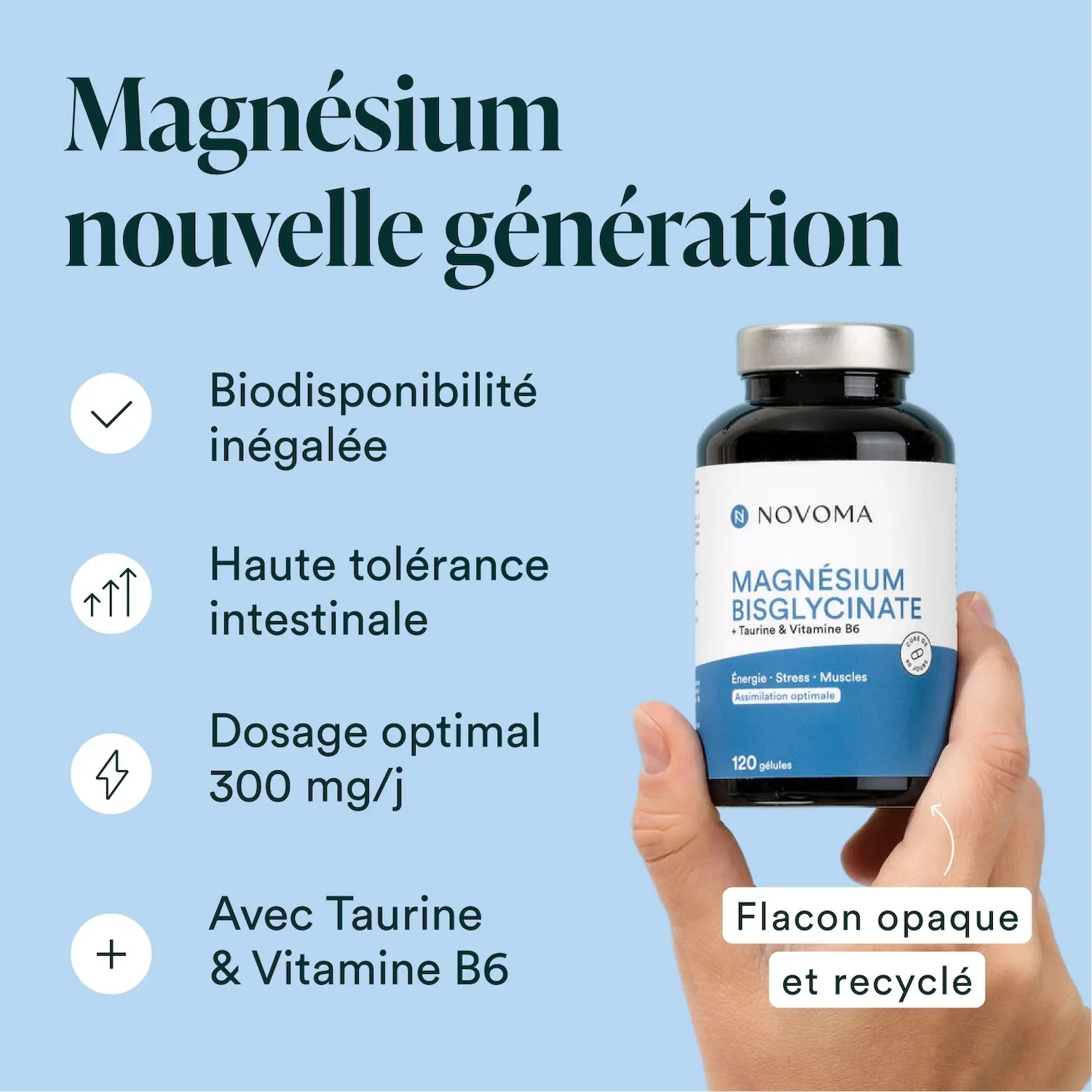 Ce qui rend unique le Magnésium Bisglycinate + Taurine et B6 de Novoma