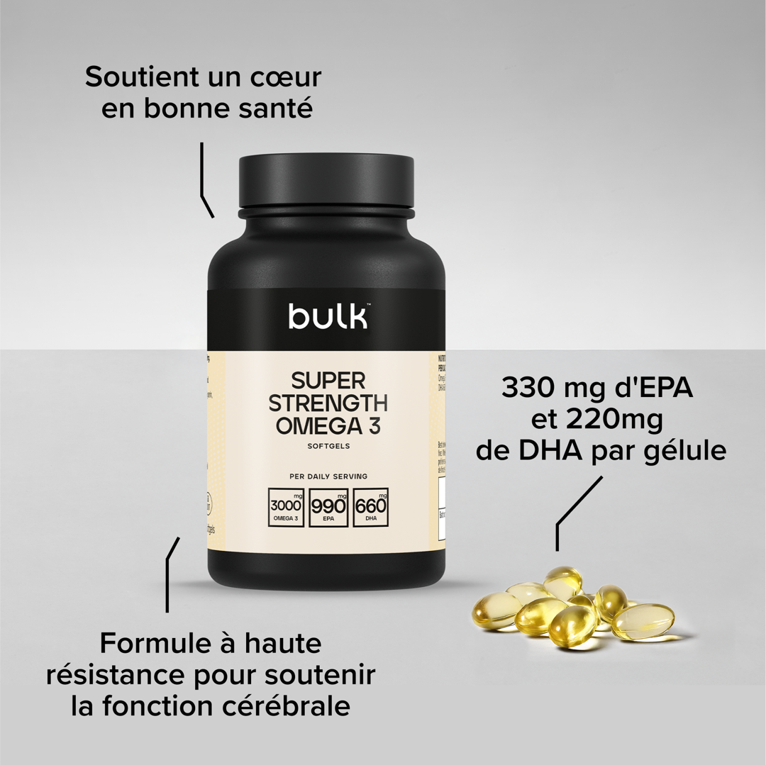 Les Oméga-3 Haute Puissance de Bulk apportent une concentration élevée en EPA et DHA issus d’huiles de poisson soigneusement sélectionnées. Chaque portion fournit 990 mg d’EPA et 660 mg de DHA, contribuant au fonctionnement normal du cœur. Ces bulk super strength omega 3 se distinguent par leur pureté, leur dosage optimal et leur excellent rapport qualité-prix pour un usage quotidien.